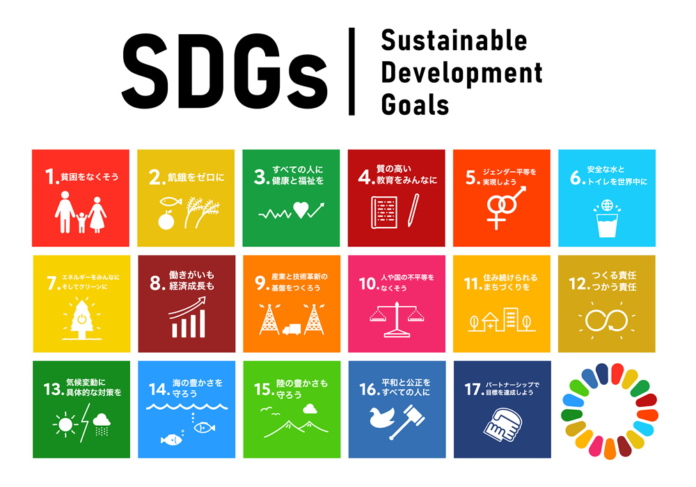 2015年の国連サミットで採択されたSDGs(Sustainable Development Goals、持続可能な開発目標)は、世界がともに実現すべき「大義」を国際的に体系化・明文化したものです。フューチャーは創業以来、「大義を問う」ことを常としてきましたが、2030年までの達成を目指しているSDGsの17の目標には、私たちが大切にしてきたフィロソフィーに通じるものが数多くあります。フューチャーグループは、これまで蓄積してきた知見と技術力、お客様とのパートナーシップを活かし、企業活動をとおして、SDGs達成に貢献することを目指しています。